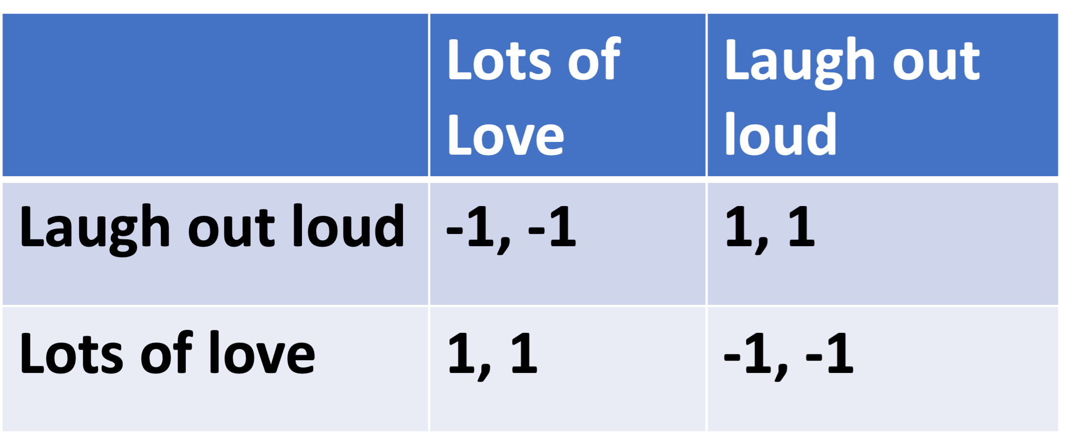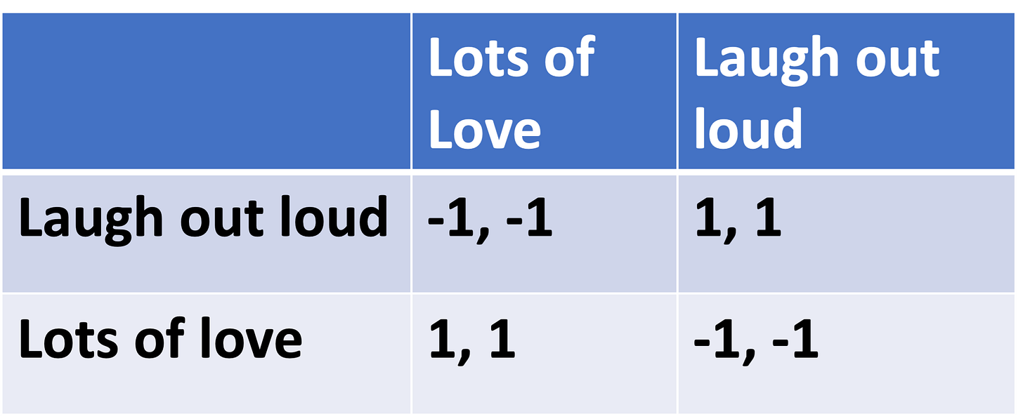 Of course, most of the coordination games we play are linguistic. We can think of language as a massive coordination game—a game we are playing right now—where we have all agreed on which symbols correspond to which things in the world. If we fail to coordinate, mixing up our words or intentions, we fail to communicate—a kind of verbal collision or linguistic misalignment. Here’s an example of one of our language games, where the shared goal is to use “LOL” to mean the same thing: